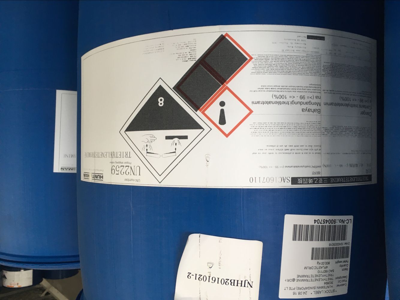 產(chǎn)品名 | 三乙烯四胺 | 英文名 | Triethylenetetramine(TETA) | 產(chǎn)品外觀 | 微黃液體 | 包裝規(guī)格 | 200kg/桶(塑料桶) | 產(chǎn)地 | 美國、沙特 | 供應(yīng)商 | 亨斯邁 | 應(yīng)用 | 造紙、潤滑油、固化劑、聚酰胺樹脂等 | 危險類別 | 8類; | CAS NO | 112-24-3 |