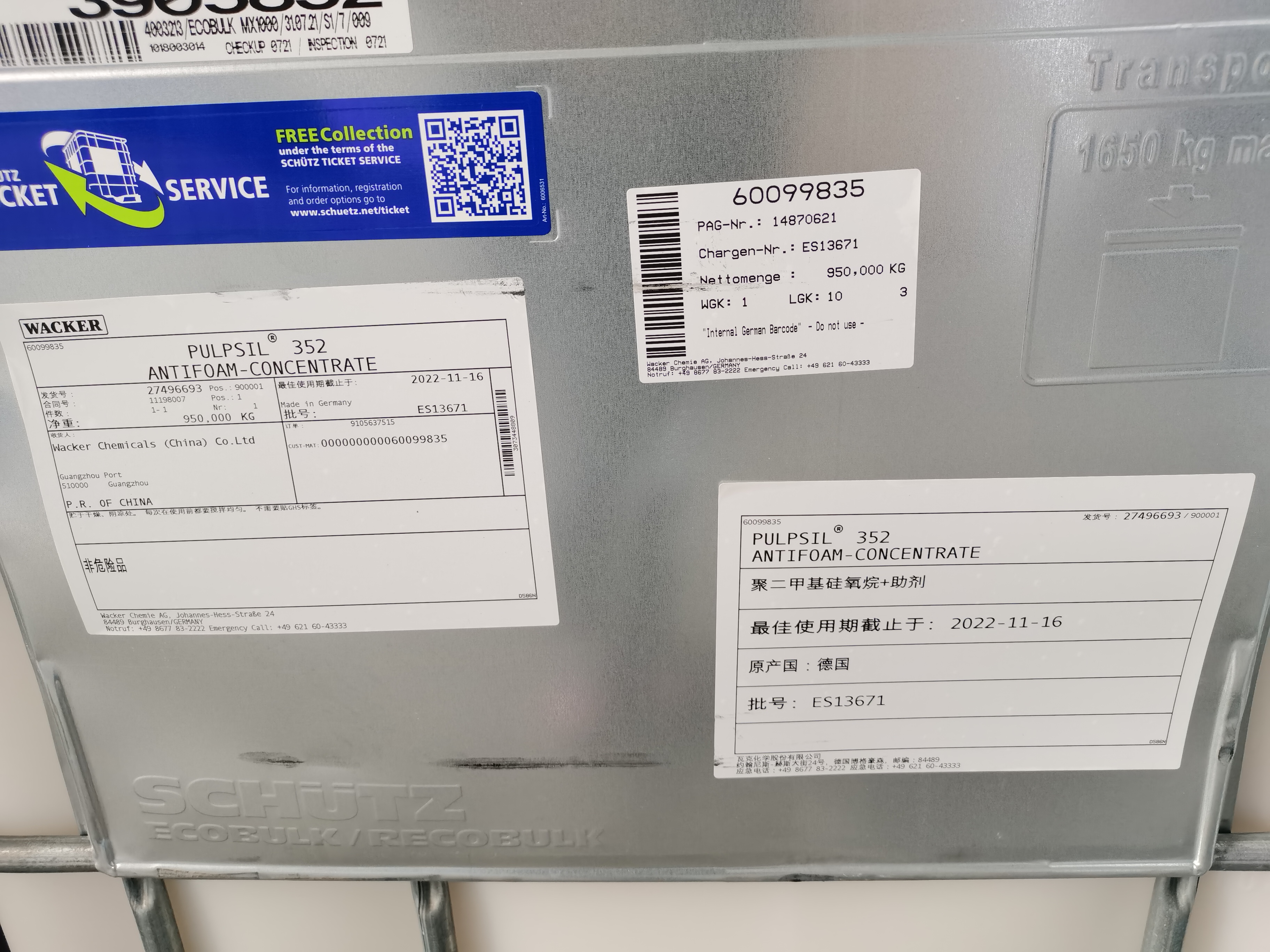 產(chǎn)品名 | PULPSIL 352 | 英文名 | Antifoam | 產(chǎn)品外觀 | 乳白色膏狀物 | 包裝規(guī)格 | 950kg/桶 | 產(chǎn)地 | 德國(guó) | 供應(yīng)商 | 瓦克 | 應(yīng)用 | 用在農(nóng)藥、紡織等;