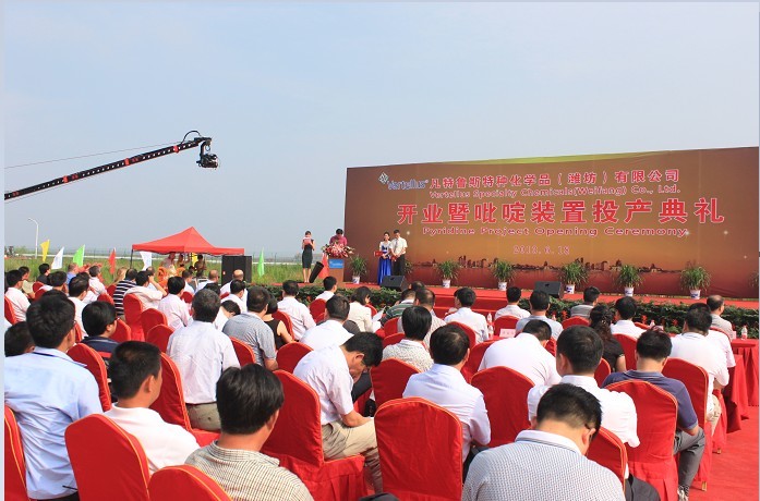 2013年6月18日,凡特魯斯特種化學(xué)品(濰坊)有限公司開(kāi)業(yè)暨吡啶裝置投產(chǎn)典禮在濰坊隆重展開(kāi),我司應(yīng)邀出席典禮。